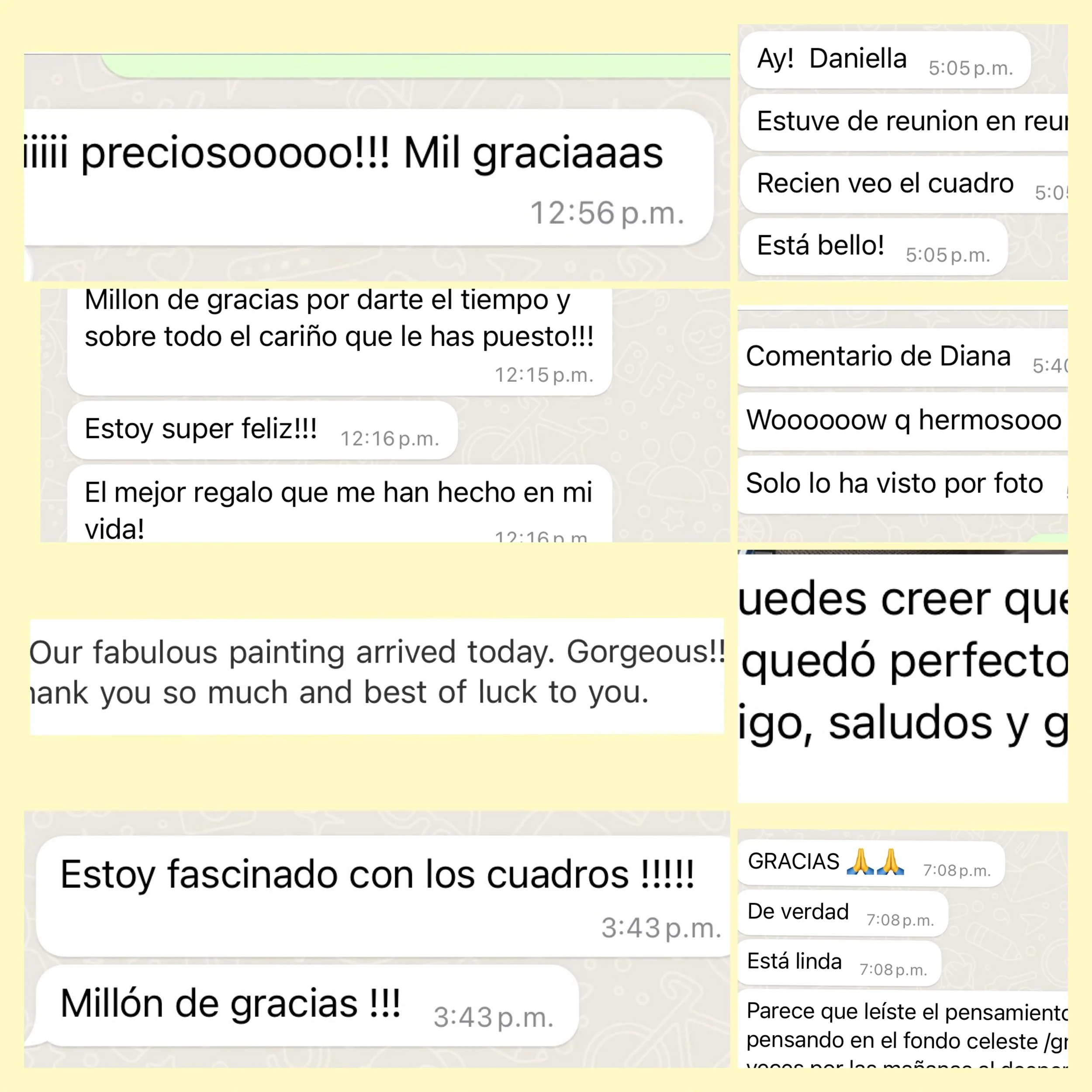Como artista, me especializo en la creación de encargos personalizados. Estas comisiones son únicas y creadas especialmente para ti. Me inspiro en tu gusto basado en tu respuesta hacia pinturas anteriores de mis propias colecciones, considerando tanto los colores como los personajes retratados. Para que la obra de arte sea verdaderamente personal, me tomo el tiempo para conocerte mejor, asegurándome de que la pieza traiga felicidad a tu hogar. Además, compartir fotos de su espacio vital o describirlo me permite crear la obra de arte perfecta adaptada a usted y su familia.