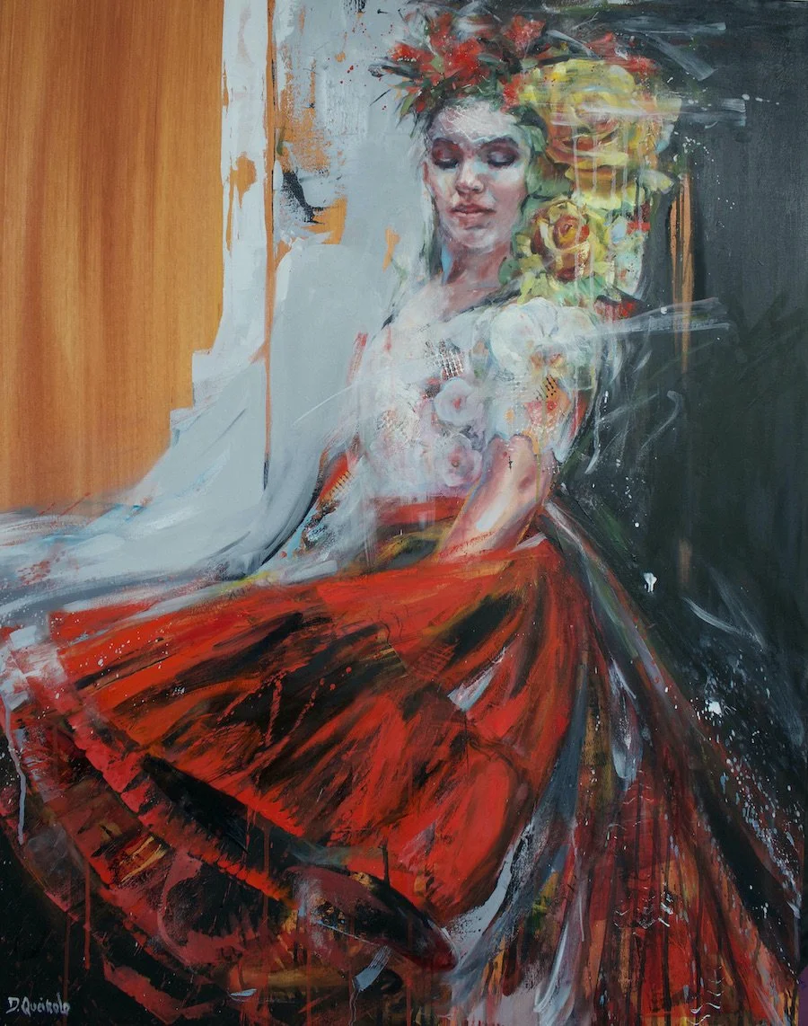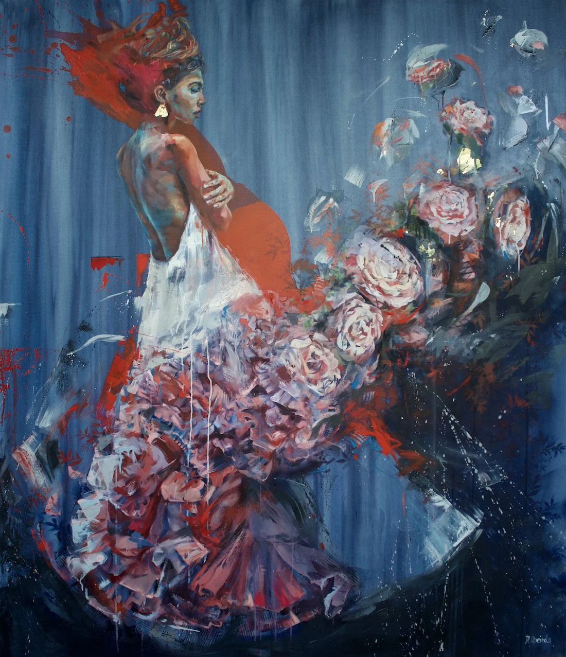 SOLD/VENDIDA Thanks to Sol Art Gallery, Dublin, Ireland. THE FLIGHT, oil on canvas, 150cm x 130cm (Winner “Highly Commended Artist” ARTIST OF THE YEAR 2024 AWARD, London.